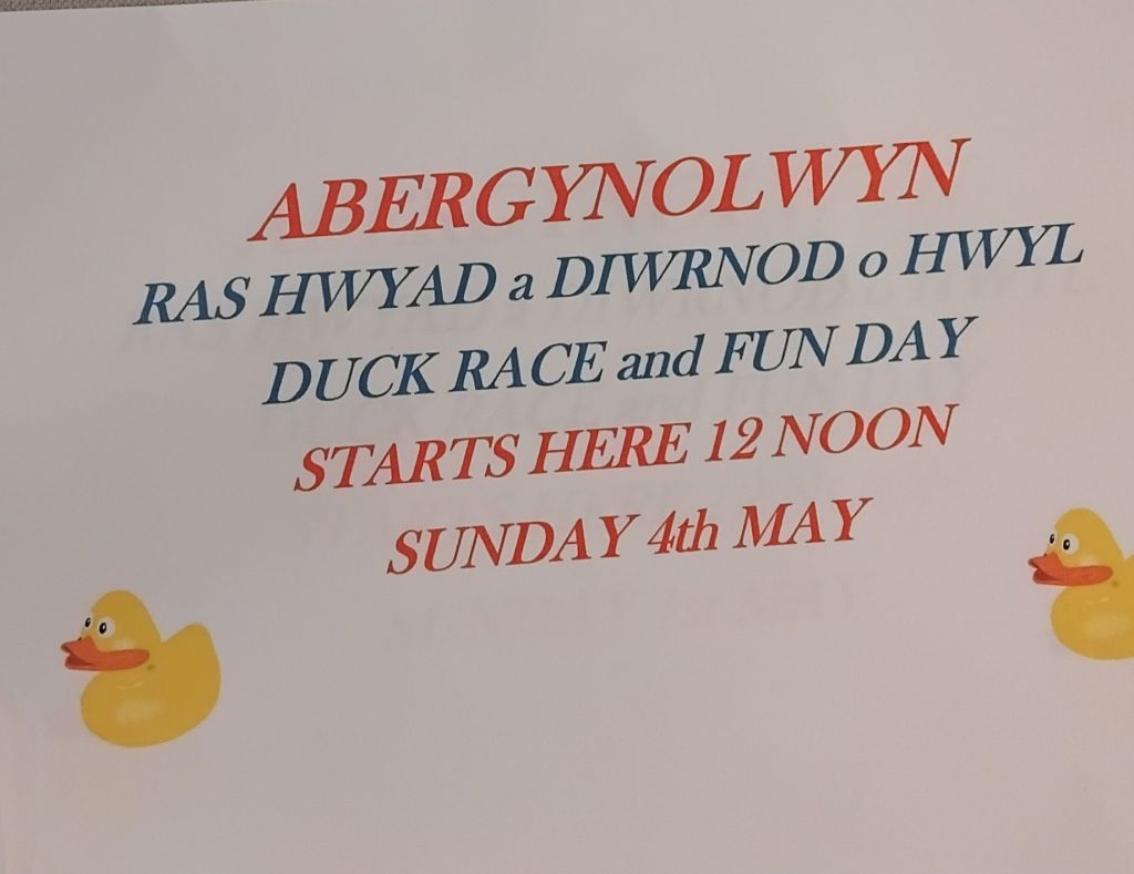 The annual Abergynolwyn duck race is a fun family community event which takes place in the village park and the river running beside it. This year it takes place on Sunday 4th May at 12pm. Ducks will be available to race on the day if you haven’t already bought one.