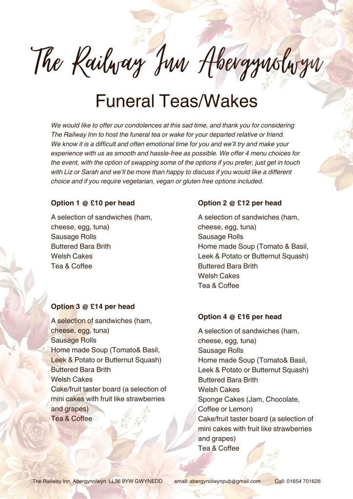 Here at The Railway Inn we take pride in catering for your special events, whether it’s a birthday, a festive celebration or a funeral.